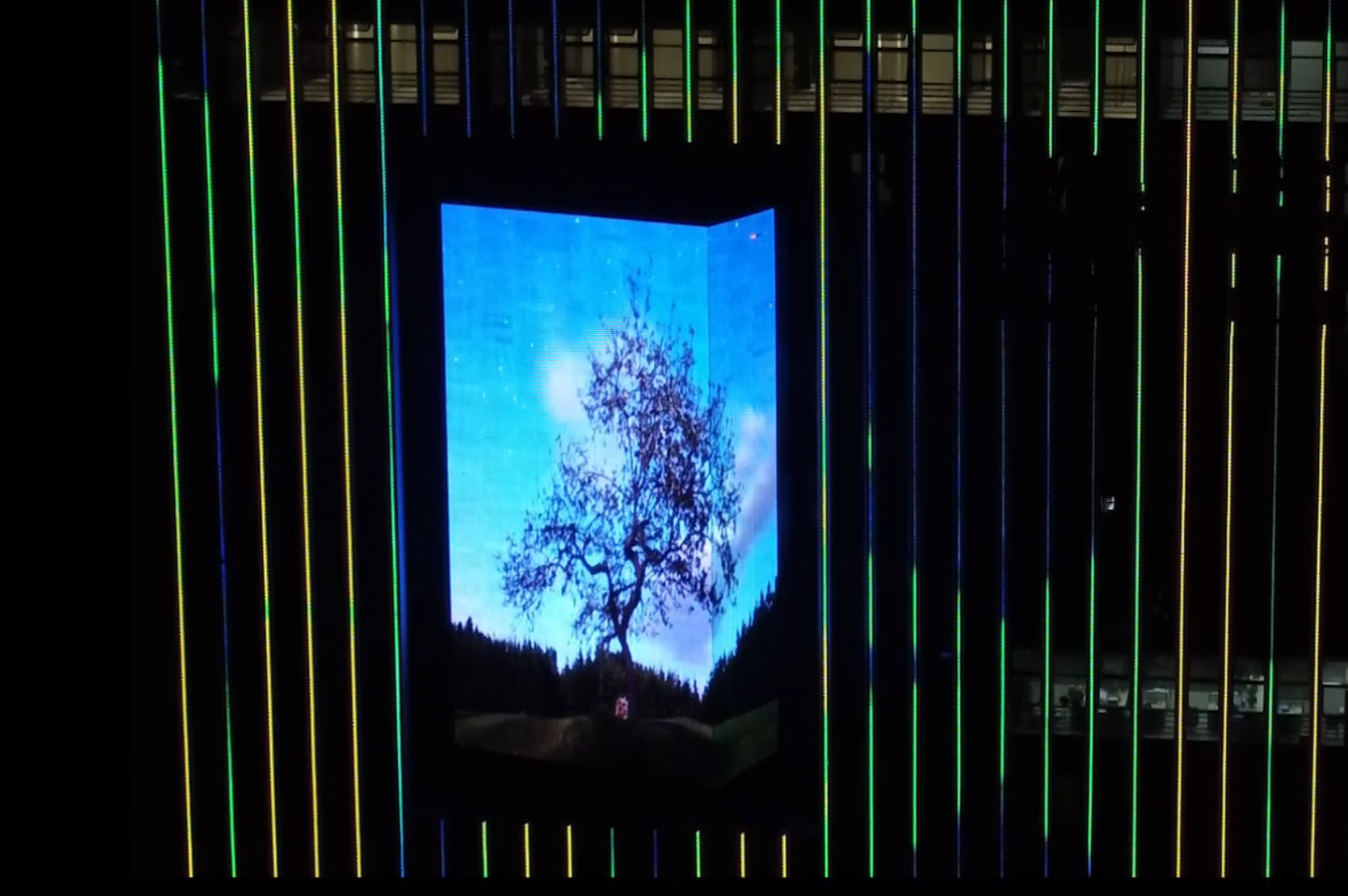 LED創意顯示天幕,體現一個公司從設計、制造到工程安裝,從產品技術開發到公司管理體系等十項全能的綜合能力。