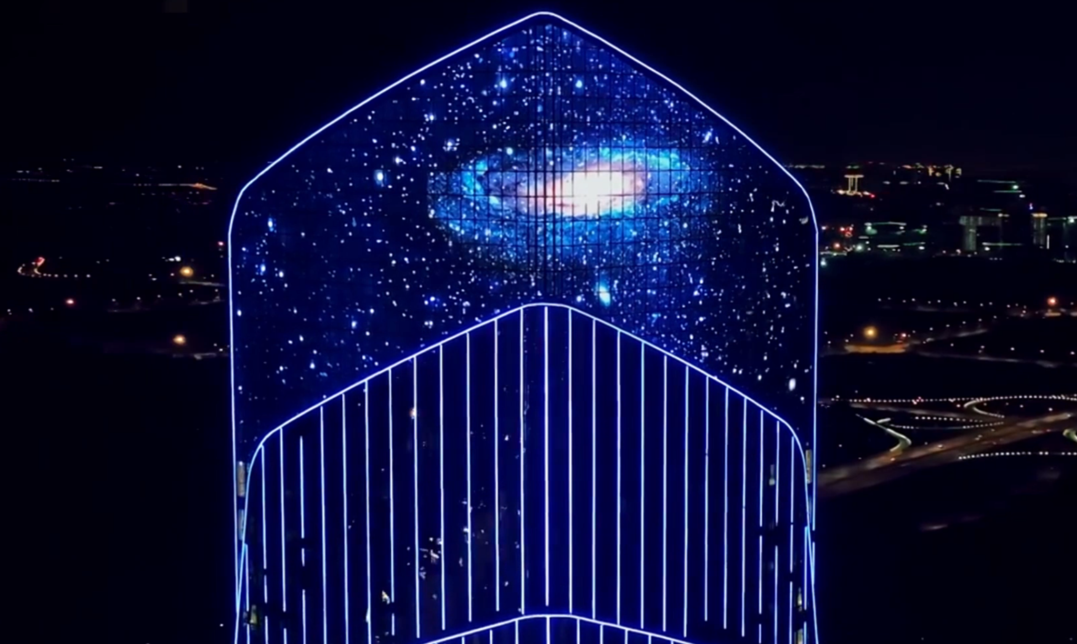 洲明文創建筑多媒體光顯方案,提升建筑視覺效果的同時,也讓建筑進行多樣化的表達、承載多形態信息,發揮地標建筑的廣告傳媒價值。